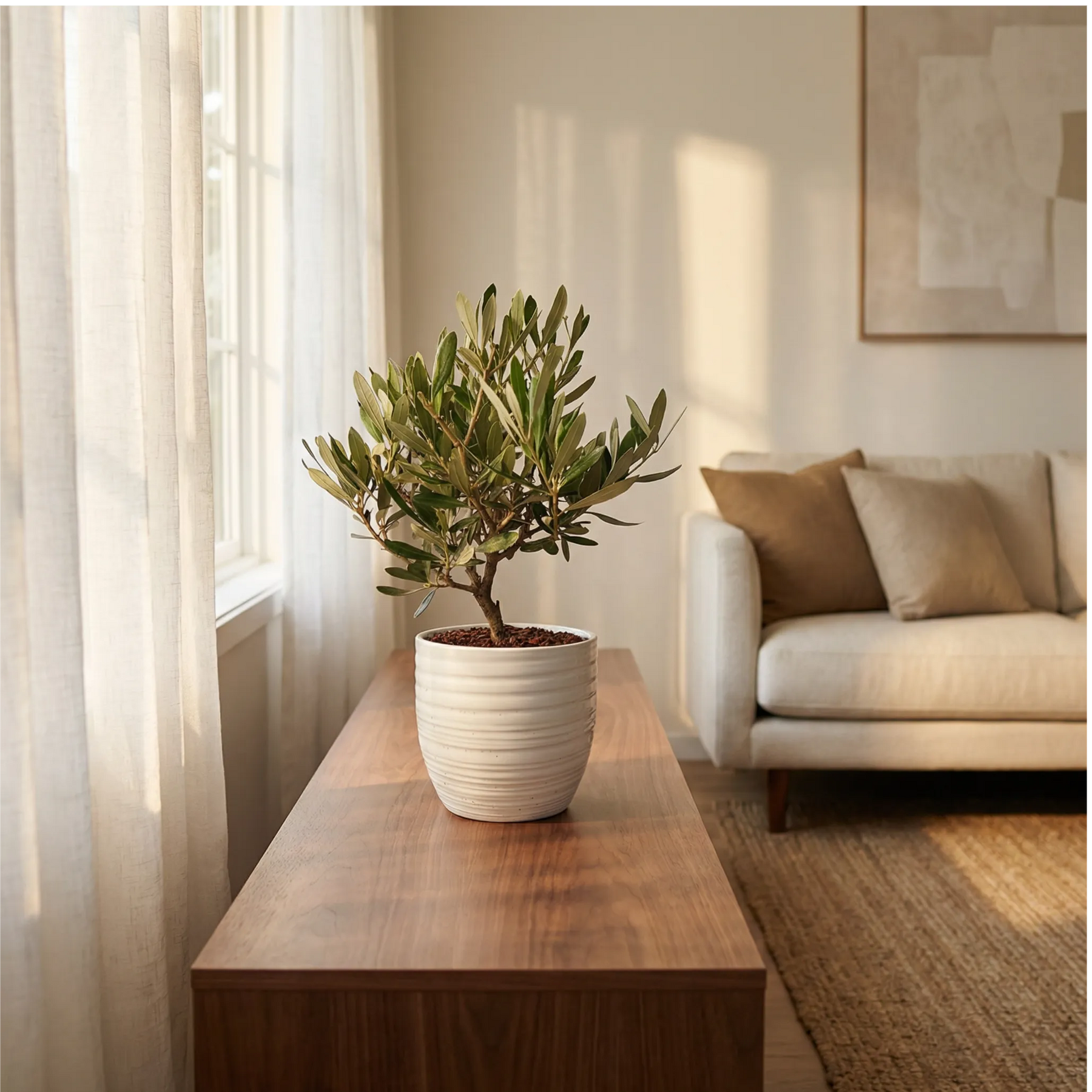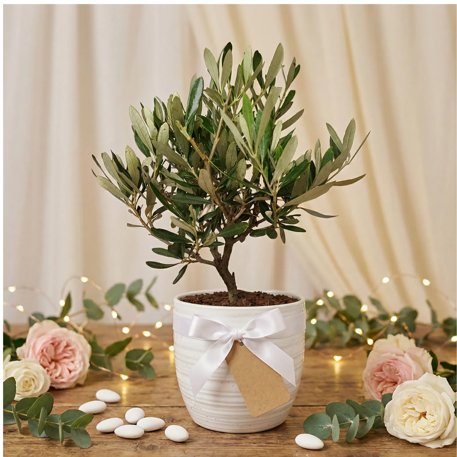 Mini Bonsai Olivo in vaso ceramica Bianco
