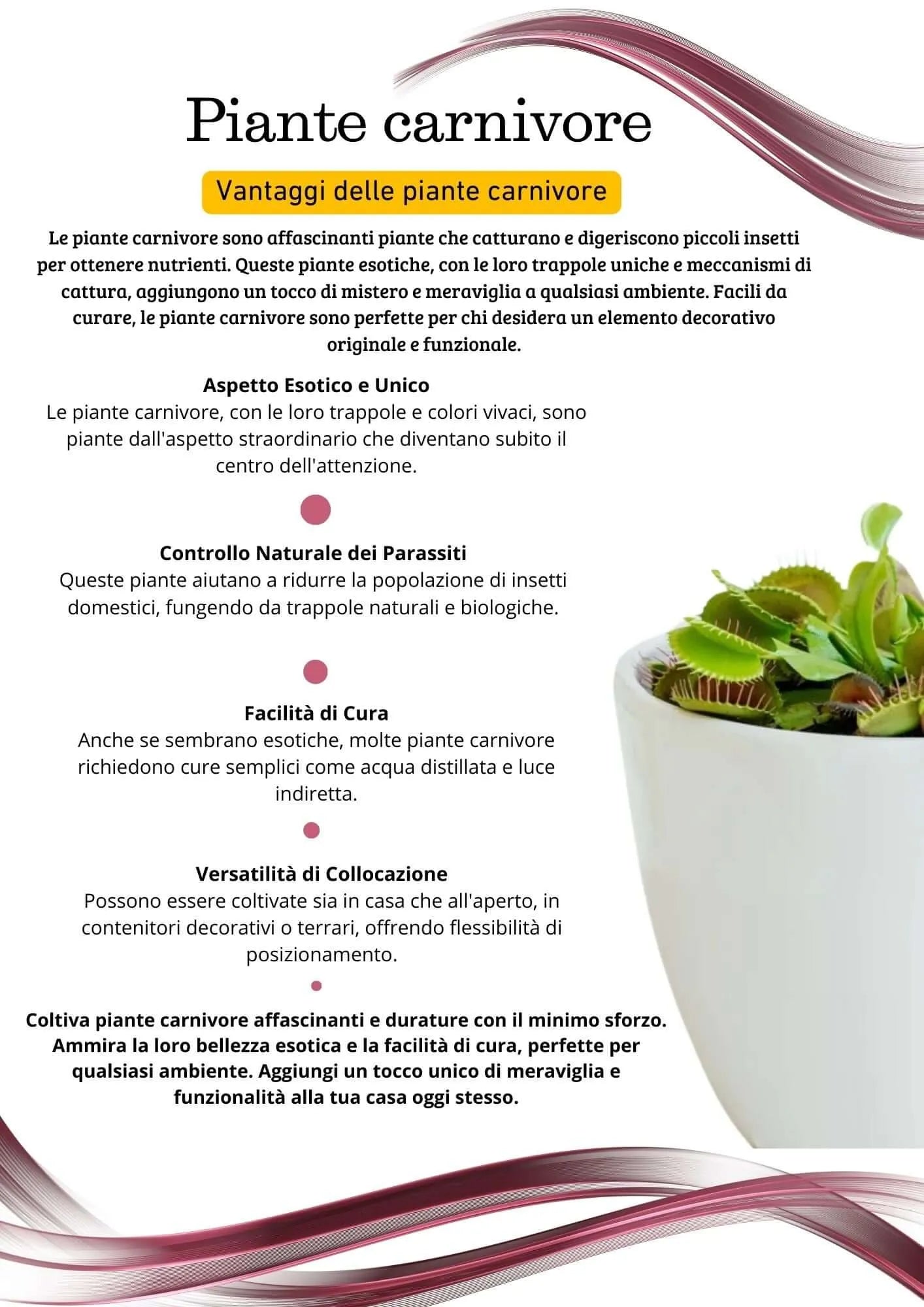 Pianta Carnivora Autentica: Questa pianta è una vera e propria predatrice naturale, in grado di catturare e digerire insetti.