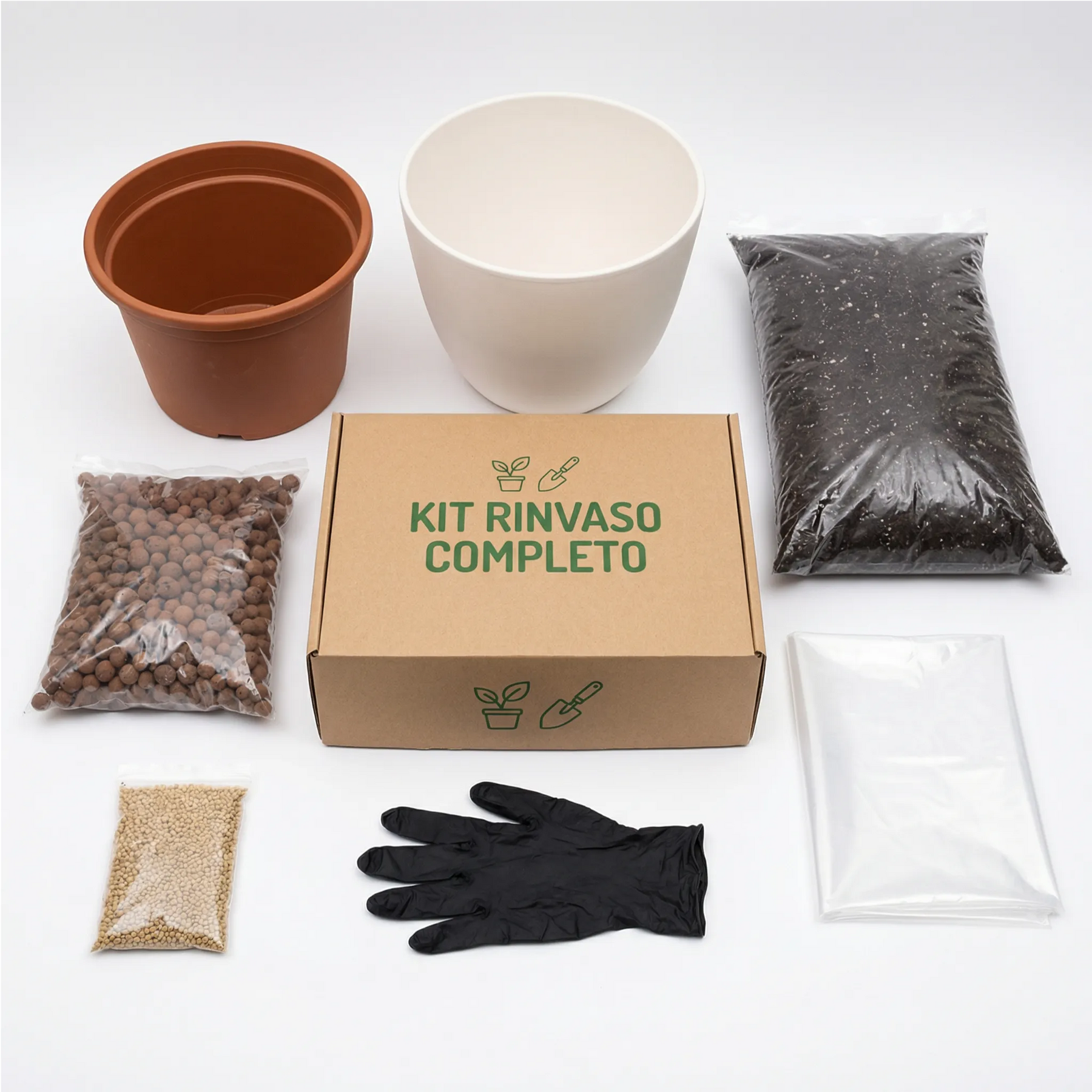 Vuoi dare nuova vita alle tue piante ma l'idea di sporcare e non sapere da dove iniziare ti frena? Abbiamo creato la soluzione definitiva: un kit rinvaso veramente completo, pensato per rendere questa operazione un'esperienza semplice, pulita e gratificante, anche se sei alle prime armi.