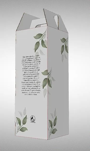 Decorata con motivi botanici in stile acquerello, la scatola è pensata per valorizzare visivamente il contenuto, proteggendolo allo stesso tempo. La doppia finestra consente un’ampia visibilità della pianta e del vaso, senza la necessità di aprire la confezione. Il manico superiore facilita il trasporto, rendendola perfetta per regali, cerimonie o spedizioni.