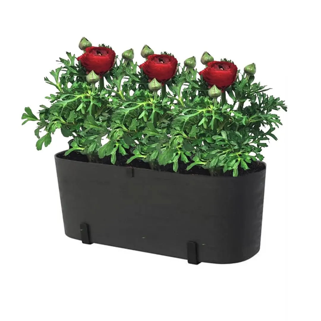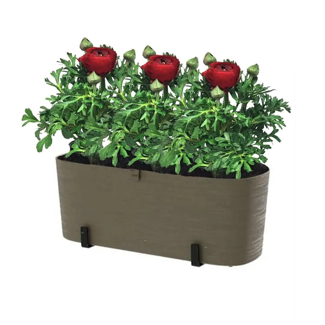 Contenuto: 2 piante di Ranuncolo colori misti ( Diametro vaso: 14 cm) + 1 Fioriera Paros 40x18x19 cm con riserva d'acqua +1 Supporto per fioriera