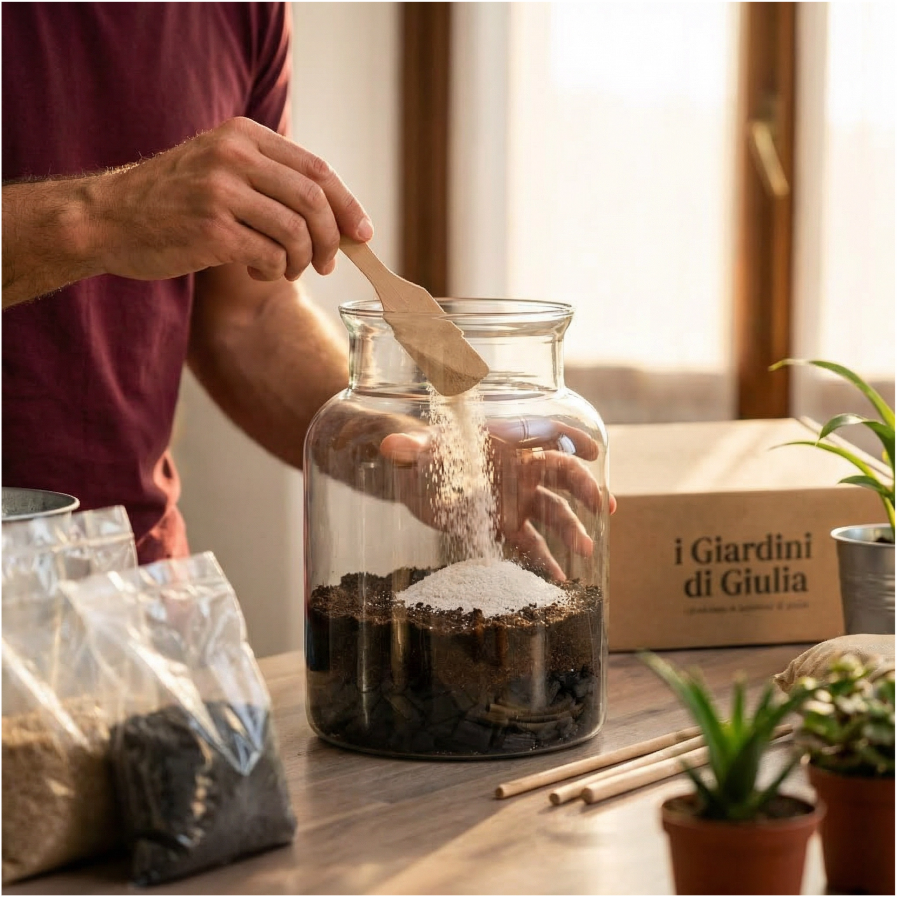 Questa soluzione è ideale per chi possiede già un vaso in vetro o desidera scegliere personalmente il contenitore perfetto per il proprio terrarium. Risparmia sul costo del contenitore e personalizza completamente il tuo mini giardino in vetro.