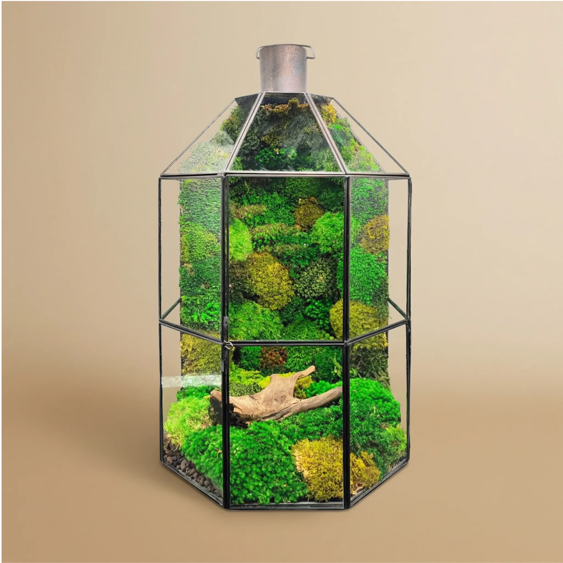 • Terrarium in vetro con struttura a lanterna in metallo