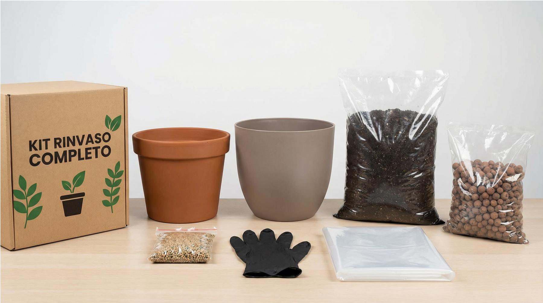 Vuoi dare nuova vita alle tue piante ma l'idea di sporcare e non sapere da dove iniziare ti frena? Abbiamo creato la soluzione definitiva: un kit rinvaso veramente completo, pensato per rendere questa operazione un'esperienza semplice, pulita e gratificante, anche se sei alle prime armi.