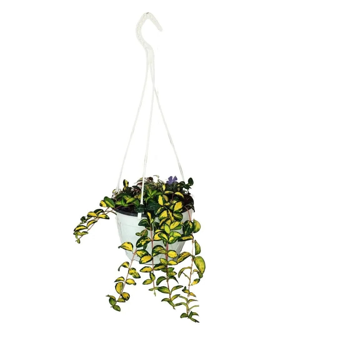 La Vinca Minor Variegata, conosciuta anche come Pervinca Variegata, è una pianta tappezzante sempreverde dal fogliame decorativo verde-crema e fioritura lilla-violacea. Con il suo portamento ricadente, è ideale come pianta sospesa per balconi, terrazzi e giardini, portando colore e vivacità agli spazi esterni.