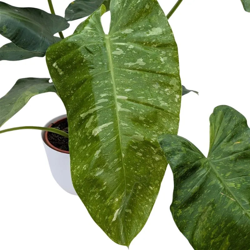 Il Philodendron giganteum variegato è una pianta da interno scenografica e di grande impatto, apprezzata per le sue foglie ampie e spettacolari, caratterizzate da eleganti variegature chiare che rendono ogni esemplare unico. Il contrasto tra il verde intenso e le sfumature crema dona luminosità e carattere agli ambienti, rendendolo un vero protagonista d’arredo.
