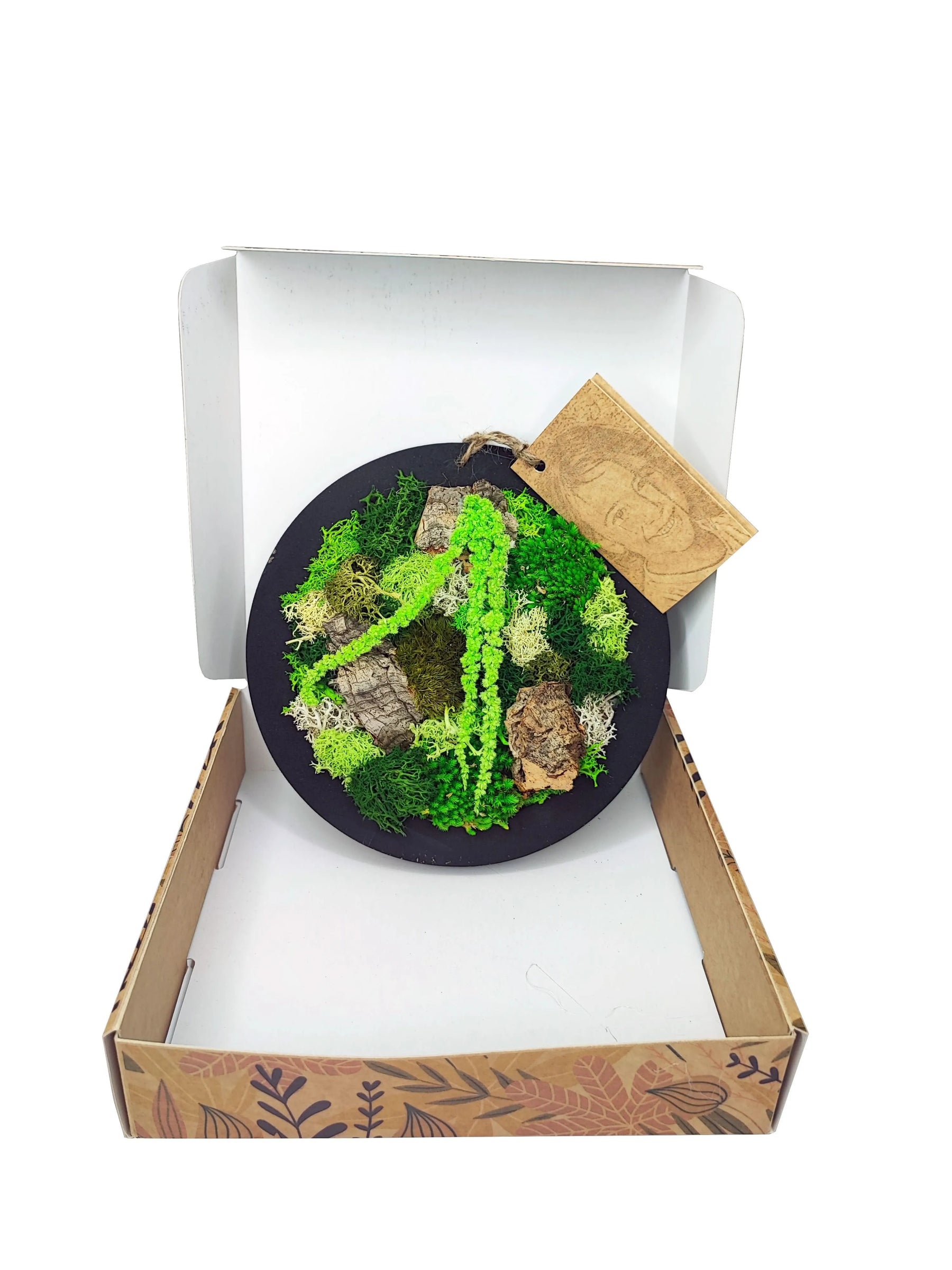 Il quadro rettangolare “Muschi di Medusa” è una soluzione d’arredo raffinata e compatta, pensata per portare un tocco di natura autentica anche in spazi ridotti. Composto da muschio stabilizzato, licheni e corteccia naturale, è realizzato con materiali 100% naturali, trattati per mantenere freschezza e colore a lungo senza necessità di luce, acqua o cure.