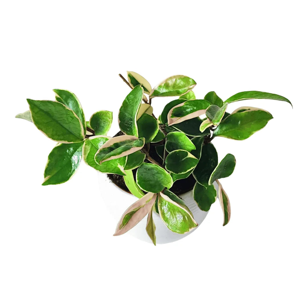 La Hoya Carnosa Krimson Queen è una pianta d’appartamento di grande fascino, apprezzata per il suo fogliame variegato di verde brillante, bianco crema e delicate sfumature di rosa. Questa varietà si distingue non solo per la bellezza del fogliame, ma anche per la possibilità di produrre fiori cerosi profumati dalla forma stellata, che impreziosiscono ulteriormente la pianta.