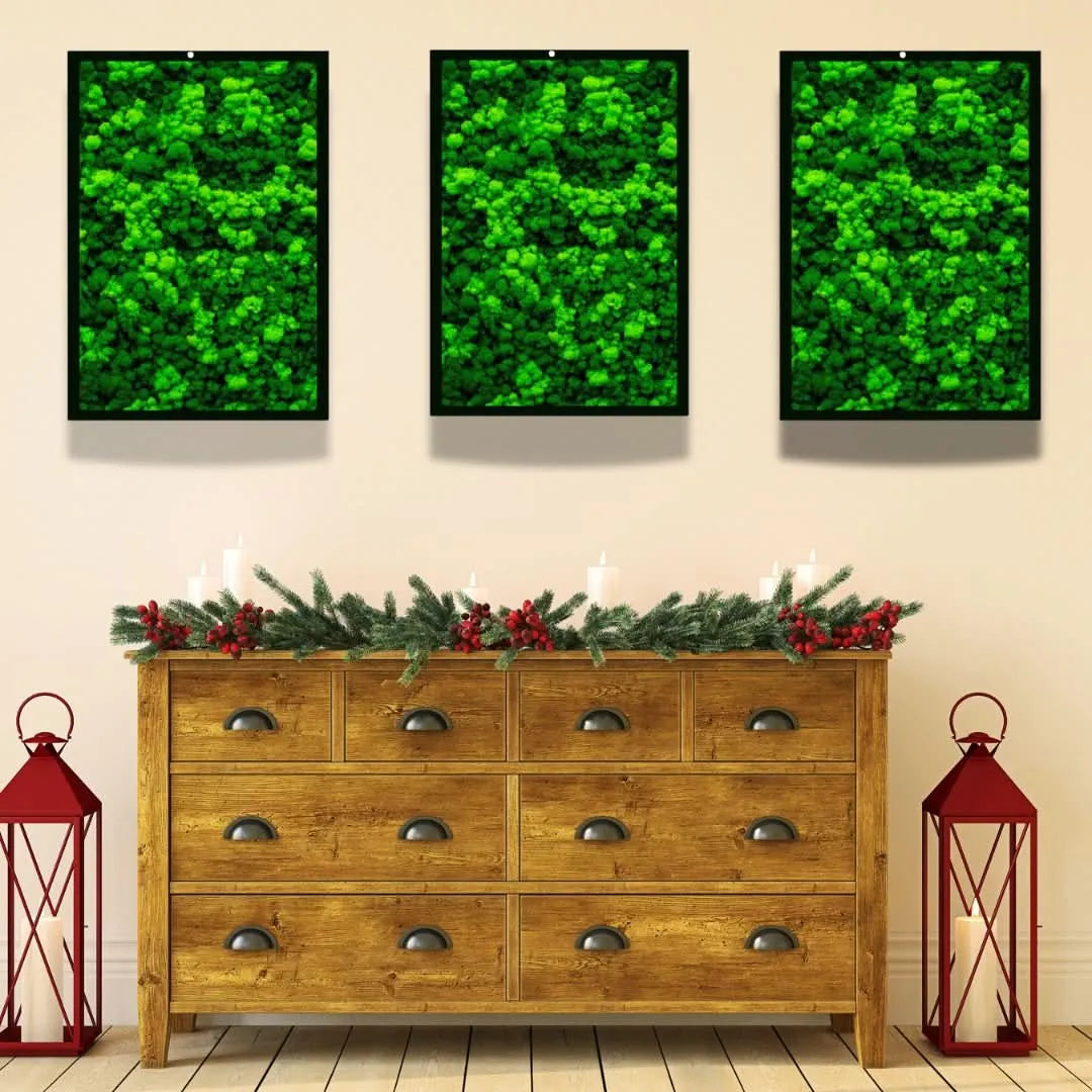 Trasforma i tuoi spazi con i quadri muschio stabilizzato rettangolari de I Giardini di Giulia, un'espressione unica di design naturale e sostenibilità. Questi elementi decorativi, realizzati con muschio e lichene stabilizzato, offrono un tocco di verde senza alcuna necessità di manutenzione, perfetti per chi cerca bellezza e praticità in ambienti come il soggiorno o l'ufficio.