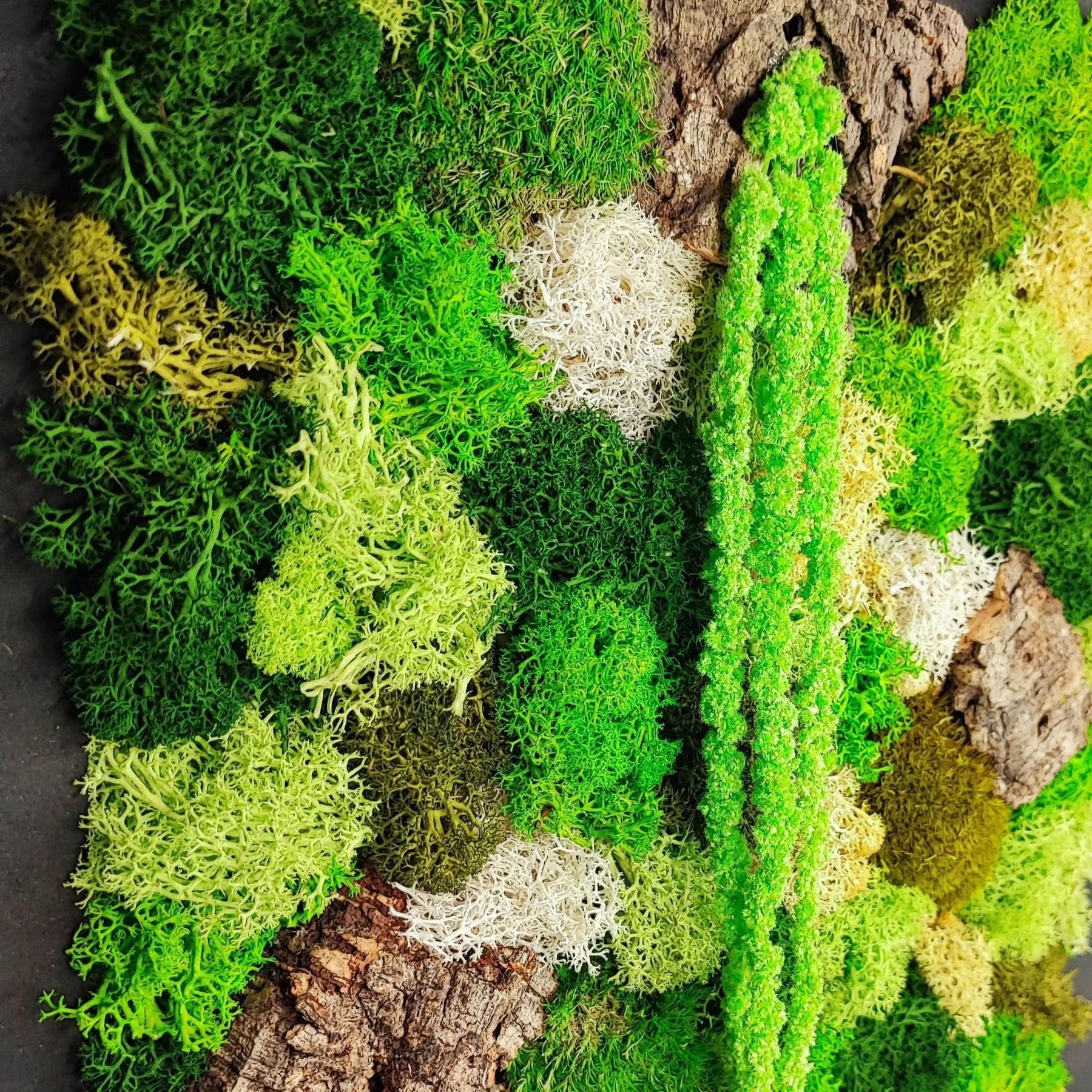 Il muschio stabilizzato è muschio naturale trattato con un processo che ne preserva l'aspetto, il colore e la morbidezza per anni, senza necessità di manutenzione.